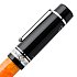 • Delta DV Original Mid-Size - Piston Fountain pen • Piston Filler screw mechanism • Stainless steel nib, palladium plated • Made of black acrylic resin • Middle celluloid band is in the lava color of Vesuvius • Sterling silver mid cap ring with Roman decorative pattern • Spring-loaded clip with a rotating ring • Unique numeric code printed on the cap • One ink bottle included - Black • Made in Italy No writing instrument symbolizes the Italian attitude to life as strongly as the Delta Dolce Vita series. It has a body made of black acrylic resin that has been stored for at least 6 months and has unique properties in terms of feel, elasticity and heat conduction properties. The middle celluloid band is in the lava color of Vesuvius. The upper/mid cap ring is made of 925 sterling silver and shows an old Roman decorative pattern that was found during excavations in Pompeii.